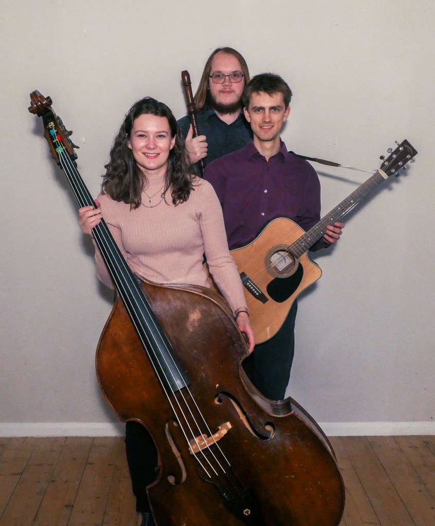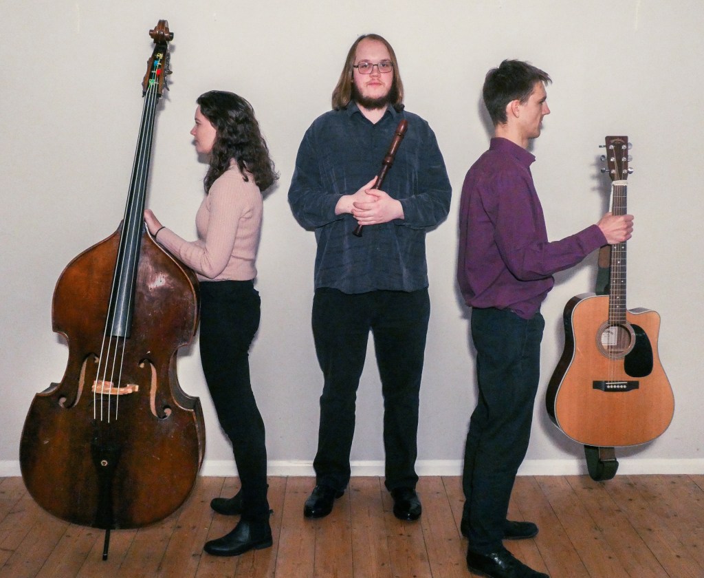 The trio comprises of Tom Ridout on Recorder, Billy Marrows on Acoustic Guitar and Flo Moore on Double Bass.